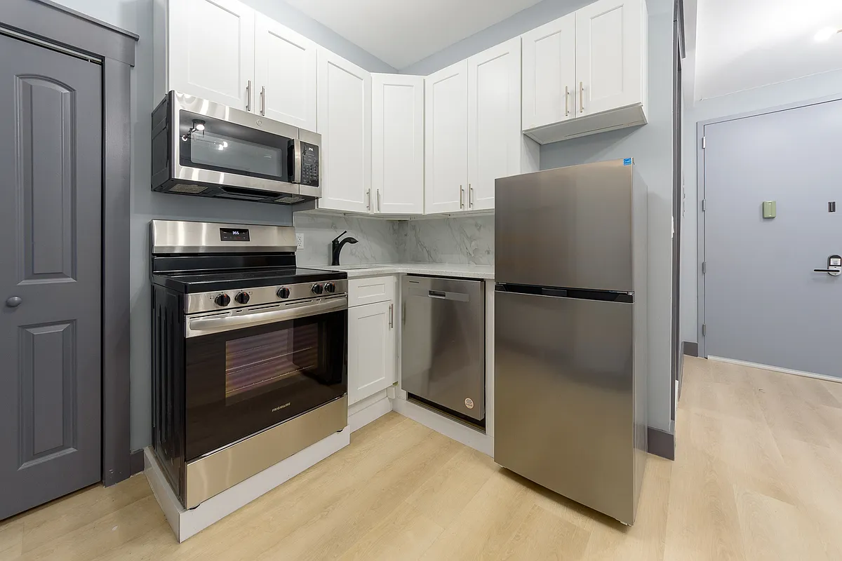 The expansive living and dining area is ideal for both entertaining and relaxing, while the chef’s kitchen boasts premium stainless steel appliances, sleek custom cabinetry, generous counter space, and a dishwasher for effortless cleanup.