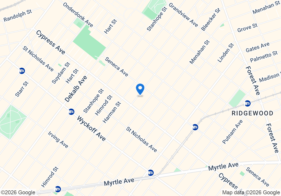 Just minutes to the L train at Seneca Ave and M train at DeKalb Ave for a quick commute to Manhattan and Brooklyn