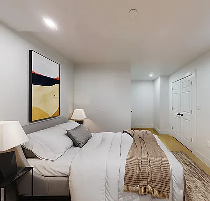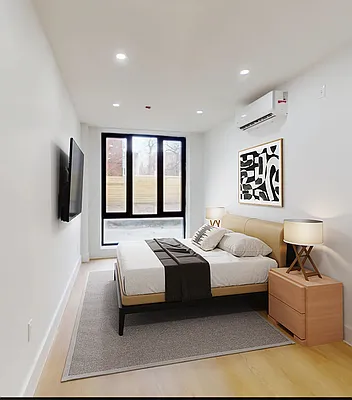 Downstairs, the generously sized bedroom offers exceptional privacy and comfort, complemented by ample closet space.