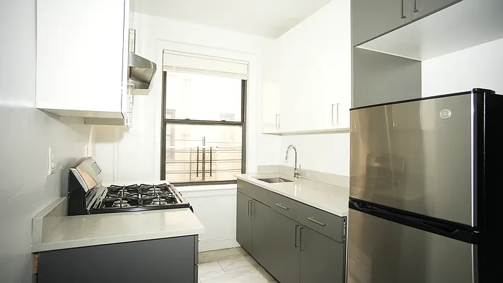 This thoughtfully designed apartment features a spacious living area with natural light, a cozy bedroom that easily fits a queen-sized bed, and a well-maintained bathroom. The kitchen offers ample cabinet space, ideal for home cooks and takeout lovers alike.